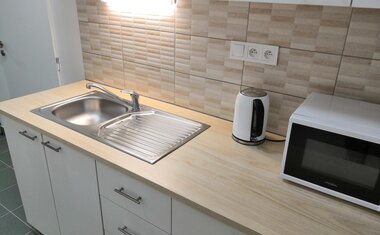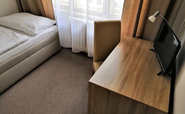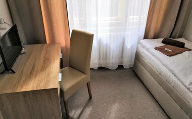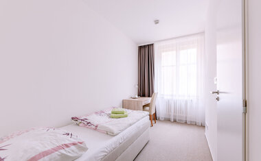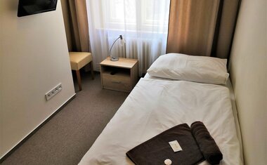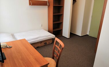 Nabízíme šest jednolůžkových pokojů s vlastní koupelnou a WC (1 z nich má bezbariérovou koupelnu) a sedm jednolůžkových pokojů se společnou koupelnou (vždy dva pokoje jsou propojené koupelnou a WC). Na chodbách jsou k dispozici kuchyňky s rychlovarnou konvicí a mikrovlnou troubou. V pokojích není dovoleno kouřit. Wi-fi pro hosty je zdarma.