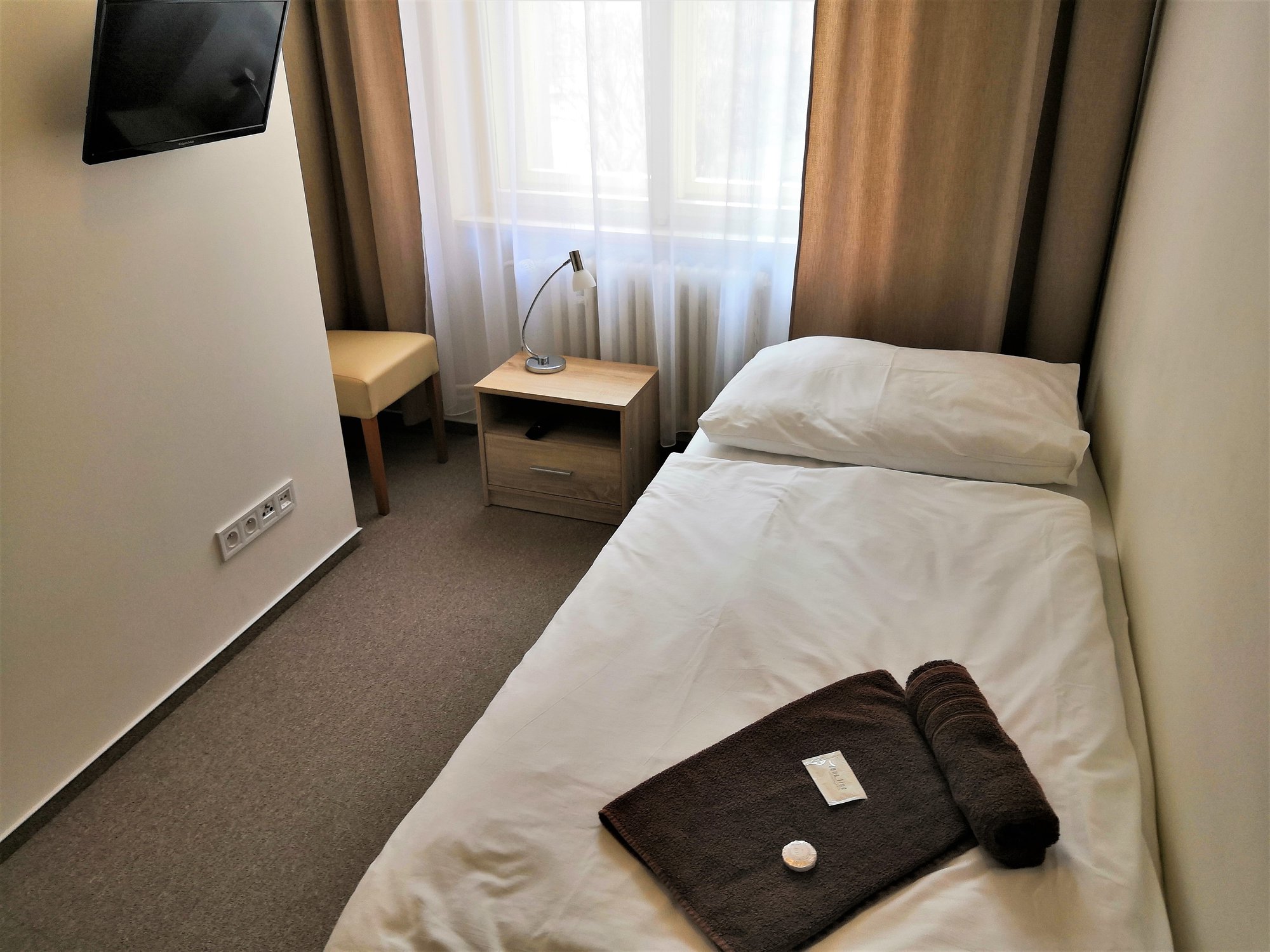 Nabízíme šest jednolůžkových pokojů s vlastní koupelnou a WC (1 z nich má bezbariérovou koupelnu) a sedm jednolůžkových pokojů se společnou koupelnou (vždy dva pokoje jsou propojené koupelnou a WC). Na chodbách jsou k dispozici kuchyňky s rychlovarnou konvicí a mikrovlnou troubou. V pokojích není dovoleno kouřit. Wi-fi pro hosty je zdarma.